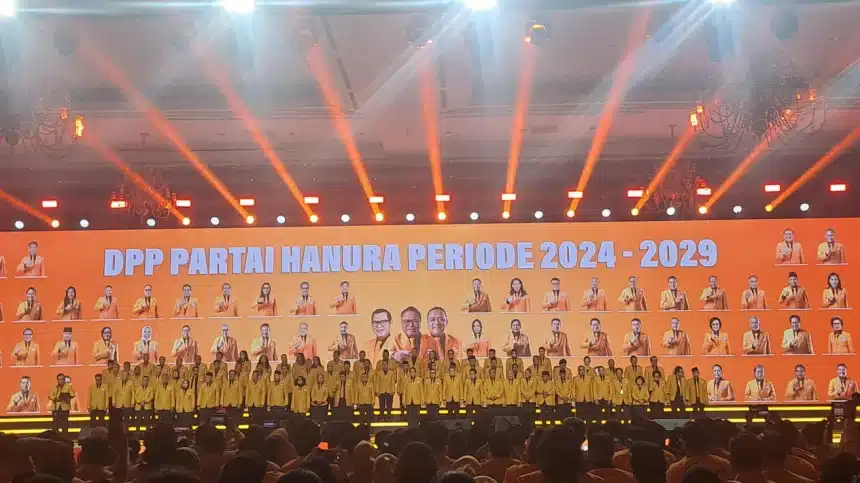 Jakarta — Partai Hati Nurani Rakyat (Hanura) resmi mengukuhkan Pengurus Dewan Pimpinan Pusat (DPP) periode 2024-2029 dalam acara yang digelar di Jakarta Convention Center, Sabtu malam, 26 April 2025. Acara ini dihadiri oleh sejumlah tokoh politik dari berbagai partai, serta beberapa figur politik nonpartai.